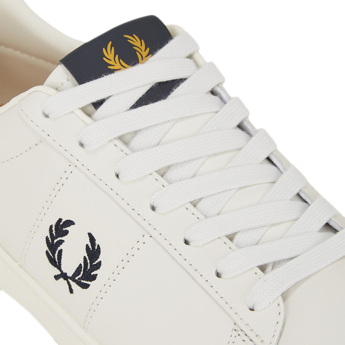 Os ténis Spencer, cuja cor predominante é o branco, foram concebidos com uma sola de borracha grossa, acabamentos contrastantes e a obrigatória coroa de louros bordada.